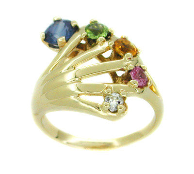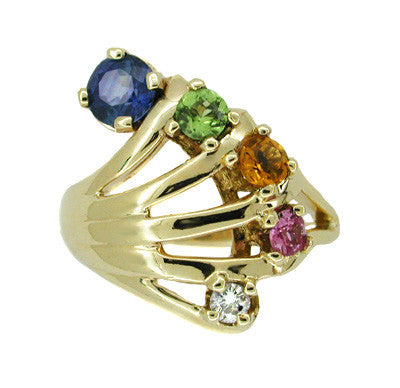 Vintage Rainbow Hand Ring Set with Blue and Pink Sapphires, Peridot, Citrine, and Diamond in 14 Karat Gold