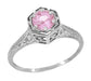 Hexagonal Art Deco Pink Sapphire Filigree Engagement Ring in 14K White Gold