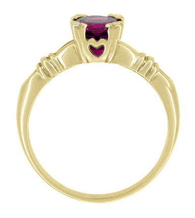 This classic rhodolite garnet engagement ring features a high setting to showcase the center gemstone, combined with a flush prong setting style to protect the edges of the stone. This makes it an excellent choice for anyone who would like an heirloom quality ring with stunning antique detail, perfect for daily wear.