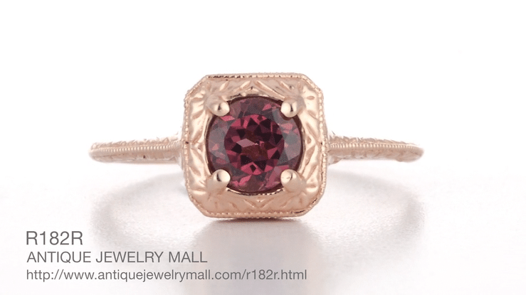 Rhodolite Garnet Filigree Scrolls Engraved Engagement Ring in 14 Karat Rose ( Pink ) Gold