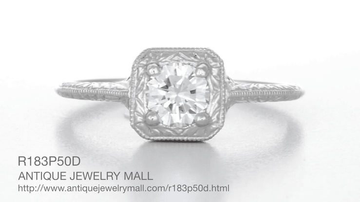 Filigree Scrolls Engraved 1/3 Carat Art Deco Vintage Diamond Engagement Ring in Platinum