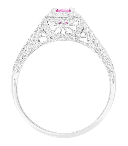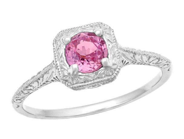 Filigree Scrolls Engraved Platinum Pink Sapphire Art Deco Engagement Ring