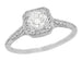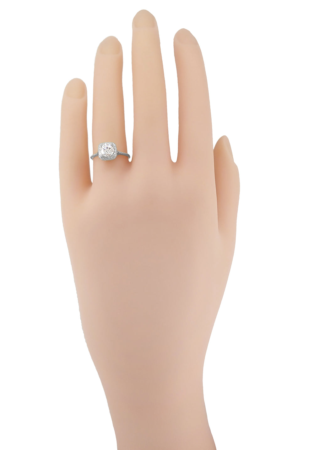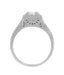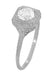 Measurements for the ring are 8.3 millimeters wide at the top of the ring, tapering down to 1.4 millimeters at the bottom of the band, with the ring sitting 6.5 millimeters off the finger. This exquisite ring features a flush low profile diamond bead prong setting style which makes it an excellent choice for anyone who would like an heirloom quality filigree diamond engagement ring with plenty of antique detail, which will not easily "catch" on things and get in the way of a busy daily routine.