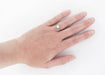 Measurements for the ring are 7 millimeters wide at the top of the ring, tapering down to 1.3 millimeters at the bottom of the band, with the ring sitting 6 millimeters off the finger.