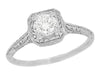Filigree Scrolls 0.25 Carat Diamond Engraved Art Deco Engagement Ring in White Gold
