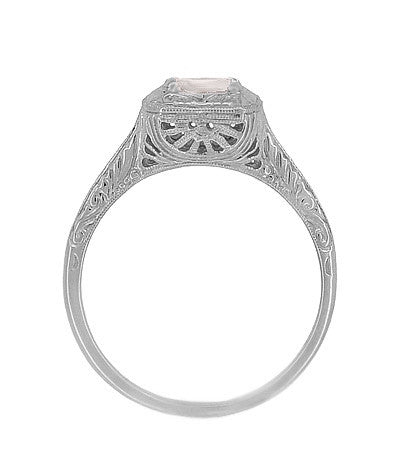 Filigree Scrolls Engraved Morganite Engagement Ring in 14 Karat White Gold