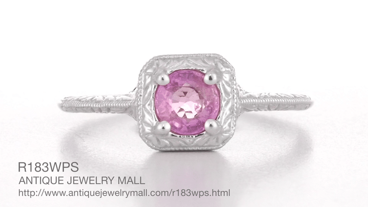 Sure to be cherished, this lovely antique style pink sapphire white gold engraved filigree pink sapphire ring is perfect for anyone who appreciates simple elegance!