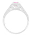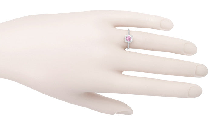 Art Deco Engraved 1920's Square Top Filigree Pink Sapphire Engagement Ring in 14 Karat White Gold