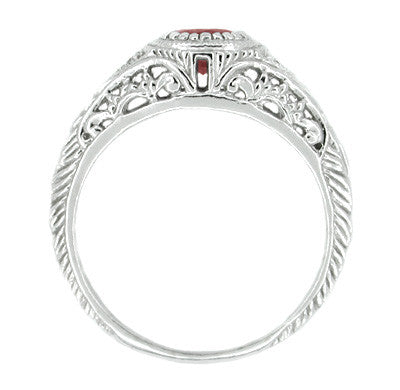 Art Deco Engraved Ruby and Diamond Filigree Engagement Ring in Platinum