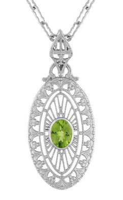 Filigree Scroll Edwardian Peridot Ring in 14 Karat White Gold