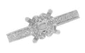 This splendid vintage style Art Deco platinum castle engagement ring setting features a classic filigree engraved four prong castle solitaire mount as the perfect secure home for your diamond or gemstone.