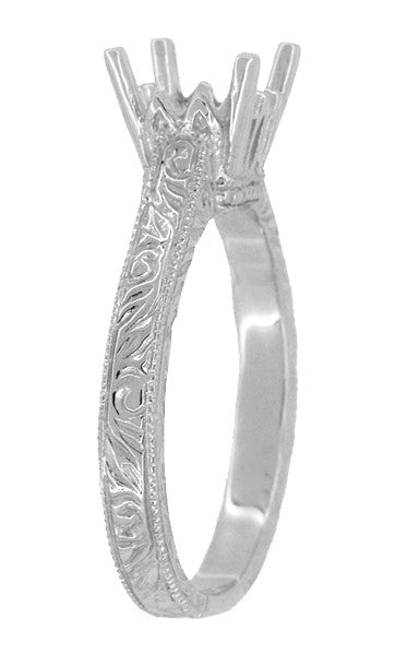 Art Deco Scrolls 1.50 - 1.75 Carat Castle Filigree Engagement Ring Setting in 14 or 18 Karat White Gold