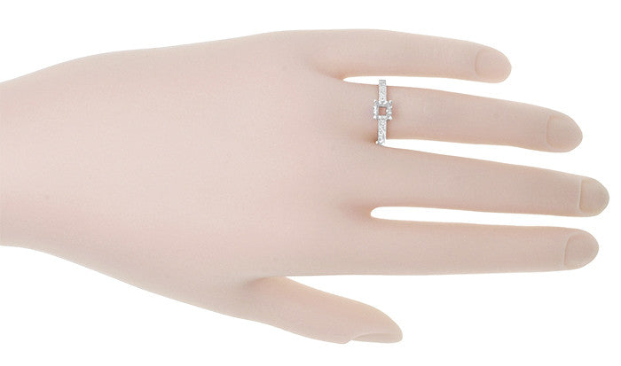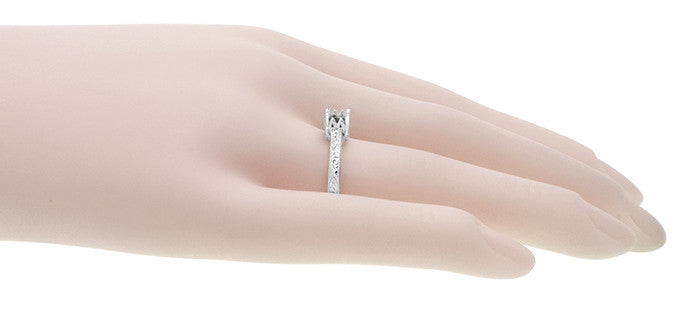 Art Deco 3/4 Carat Scroll Engraved Castle Filigree Engagement Ring Setting in White Gold