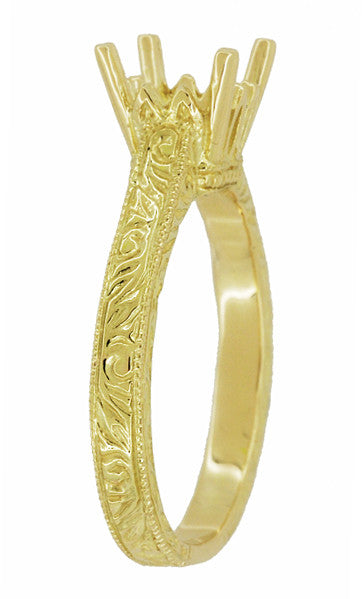 Crafted to order in your choice of 18 Karat or 14 Karat yellow gold, this antique yellow gold solitaire engagement mount design is also made for other stone sizes and in other metals.