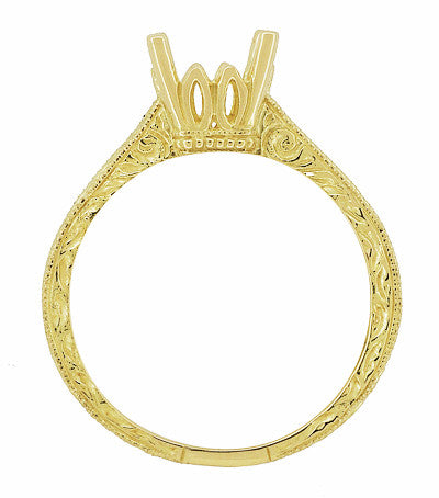 Yellow Gold Art Deco Scrolls Filigree Crown 1.50 - 1.75 Carat Engagement Ring Setting - 14K or 18K