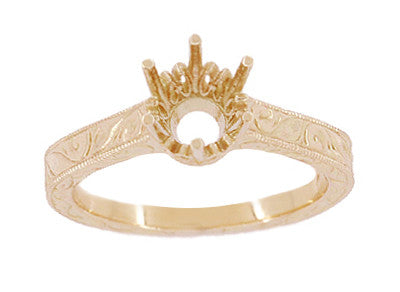 Art Deco 3/4 Carat Crown Filigree Scrolls Engagement Ring Setting in 14 Karat Rose ( Pink ) Gold