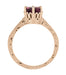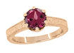 Scroll Filigree Art Deco Crown 1.5 Carat Rhodolite Garnet Solitaire Engagement Ring in 14 Karat Rose ( Pink ) Gold
