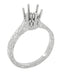 This elegant vintage style Art Deco white gold crown engagement ring setting features a secure six prong filigree solitaire crown mounting designed to showcase a 1.50 carat to 1.75 carat round diamond.