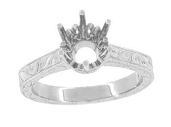 Scroll Filigree Art Deco Crown Engagement Ring Setting for a 1.75 - 2.25 Carat Round Diamond in White Gold - 14K or 18K