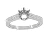 Art Deco Filigree Scrolls 1/4 Carat Crown Engagement Ring Setting in White Gold