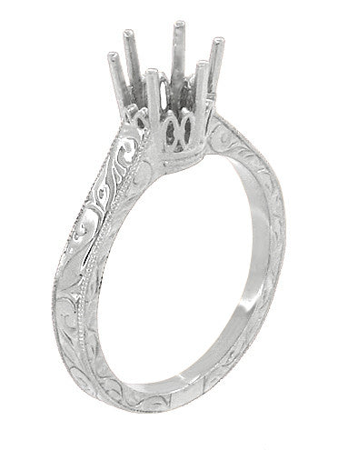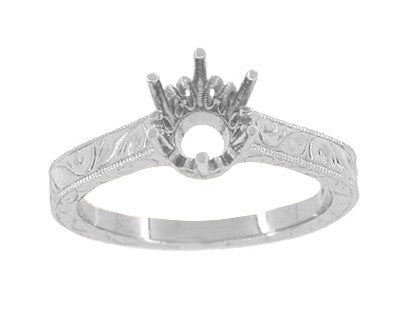 Art Deco Filigree Scrolls White Gold 3/4 Carat Crown Engagement Ring Setting
