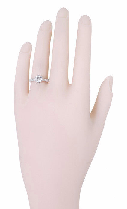 Perfect for anyone who desires a larger diamond with "presence", this gorgeous heirloom engagement ring design is crafted to order in your choice of 14K or 18K white gold. Select a natural diamond or lab created diamond to customize yours!