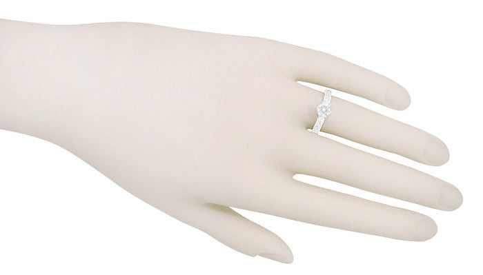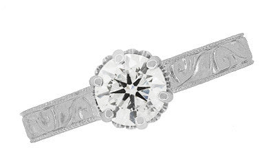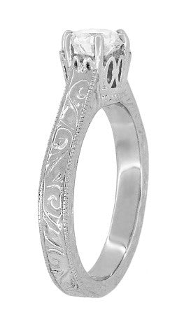 Filigree Scrolls Engraved 1/2 Carat Diamond Art Deco Crown Solitaire Engagement Ring in White Gold