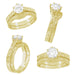 This crown ring setting is shown in a photo on this page with a diamond, and with the optional companion wedding ring for display purposes only. An order for this engagement ring semimount does not include a center diamond - unless you choose to add one above - or the separately available coordinating yellow gold wedding ring WR199Y.