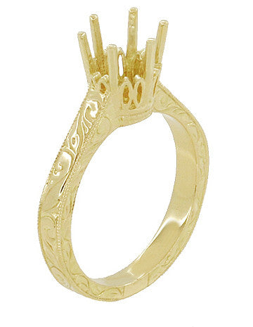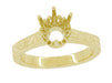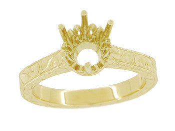 Yellow Gold Vintage Style Art Deco Filigree 1.75 - 2.25 Carat Crown Engagement Ring Setting for a Round Stone