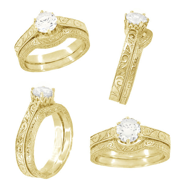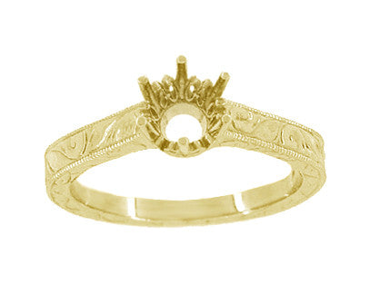 1/3 Carat Crown Filigree Scrolls Art Deco Engagement Ring Setting in Yellow Gold - 14 Karat or 18 Karat