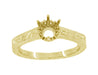 Art Deco Yellow Gold Vintage Carved Filigree Scrolls 1/2 Carat Crown Engagement Ring Setting