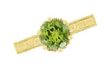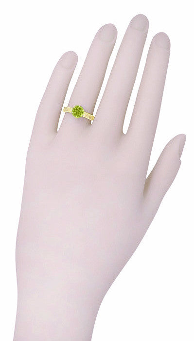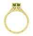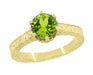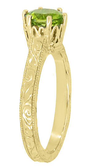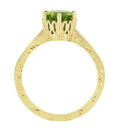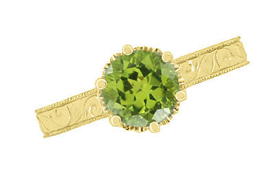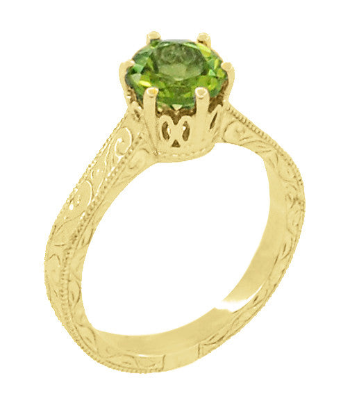 Art Deco Crown Filigree Scrolls 1.25 Carat Peridot Engagement Ring in 18 Karat Yellow Gold