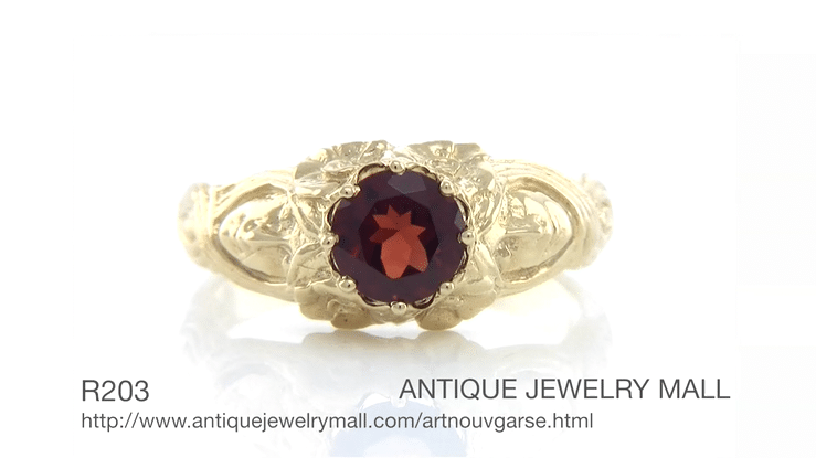 Crowned Maidens Art Nouveau Garnet Ring in 14 Karat Yellow Gold