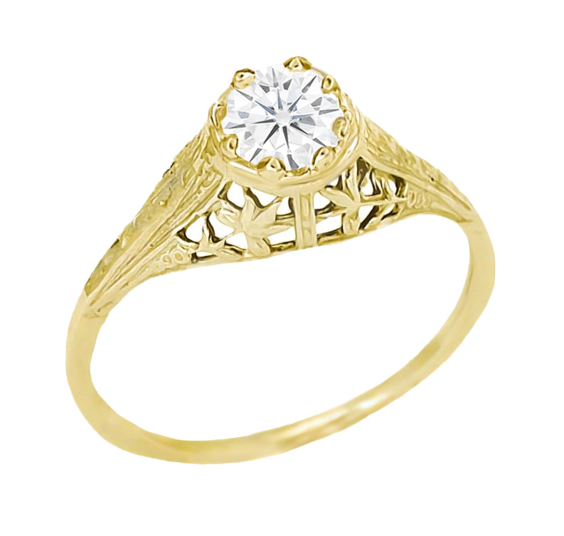 Cleire Yellow Gold Art Deco Filigree 1/4 Carat Diamond Vintage Style Engagement Ring