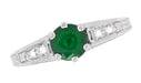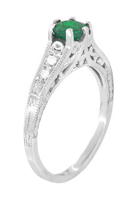 Art Deco Emerald and Diamond Filigree Engagement Ring in 14 Karat White Gold