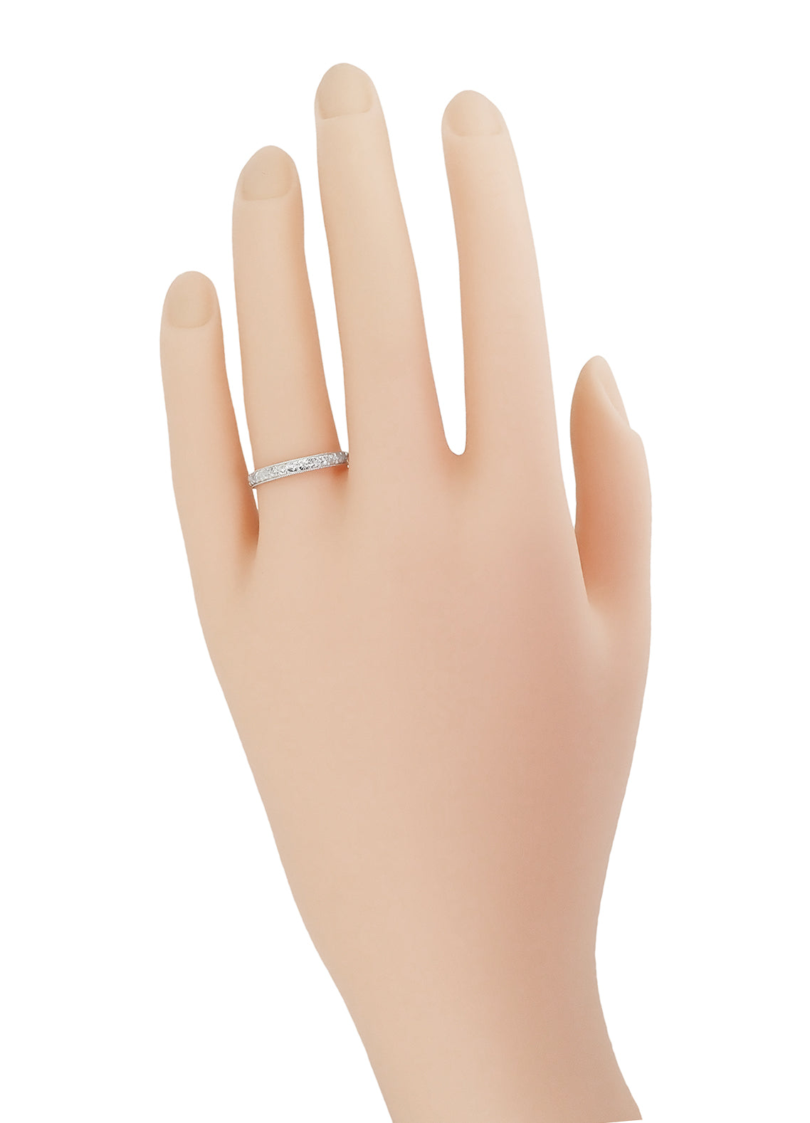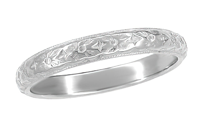 Art Deco Engraved Dogwood Flowers Antique Design Wedding Band in Platinum