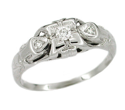 1930's Vintage Haddam Art Deco Diamond Filigree Engagement Ring - 18K White Gold