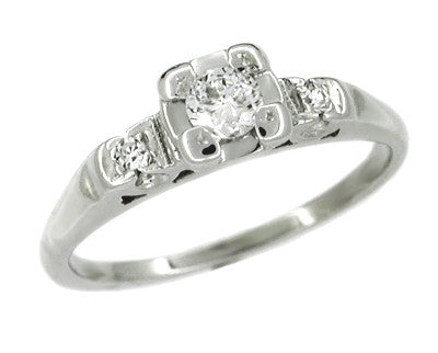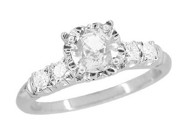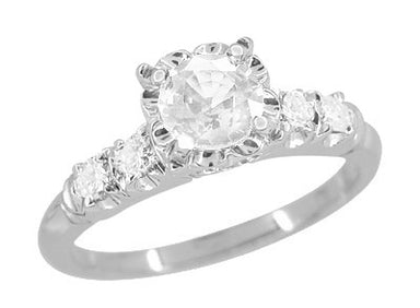 Retro Moderne Fishtail Box Vintage Old European Cut Diamond Engagement Ring - 14 Karat White Gold
