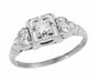 Art Deco Antique Leaves Filigree Diamond Illusion Engagement Ring in 14K White Gold