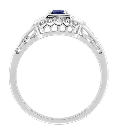 Art Deco Sapphire Filigree Engagement Ring with Side Diamonds in 14 Karat White Gold