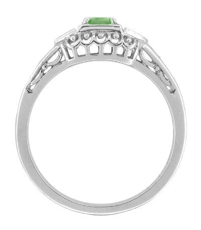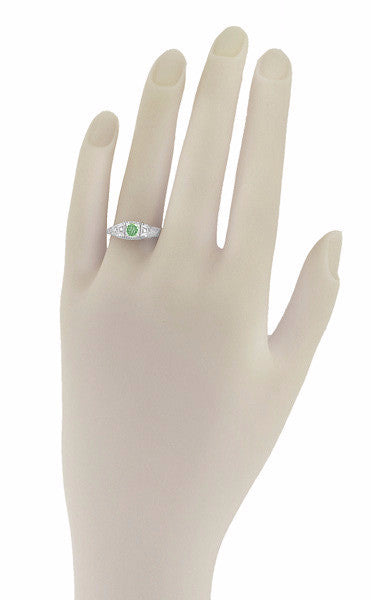 Art Deco Mint Green Tourmaline and Diamond Filigree Vintage Style Engagement Ring in 14 Karat White Gold