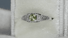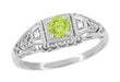 1920's Art Deco Peridot and Diamond Filigree Ring in 14 Karat White Gold