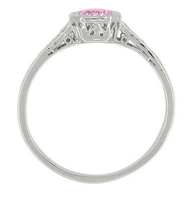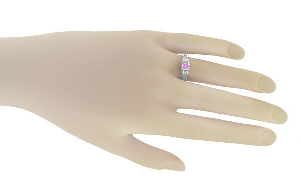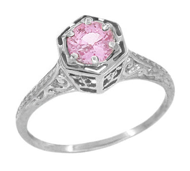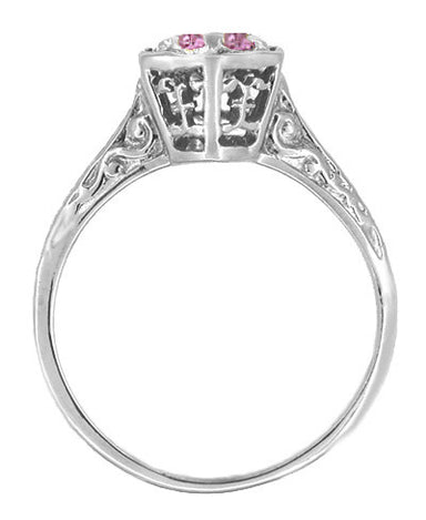 1920's Style Pink Sapphire and Diamonds Art Deco Filigree Engagement Ring in 14 Karat White Gold