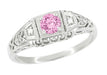 Pink Tourmaline and Diamond Art Deco Filigree Engagement Ring in 14 Karat White Gold