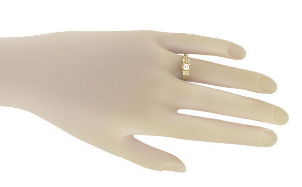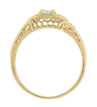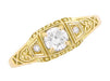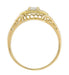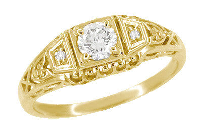 Art Deco Yellow Gold White Sapphires Filigree Low Dome Engagement Ring