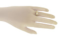 With a dainty design - perfect for smaller hands and fingers - this lovely 1920's replica white sapphire ring sits a low 3/16 inch off the finger. Measures 6.2 millimeters wide at the top of the ring and tapers down to 1.7 millimeters wide at the bottom of the band.