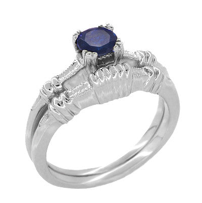 This blue sapphire engagement ring is shown on this page with the companion wedding ring for display purposes only. An order for R230 does not include the matching separately available white gold wedding ring WR163W.