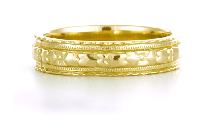 Art Deco Yellow Gold 5mm Wide Floral Carved Wedding Ring
