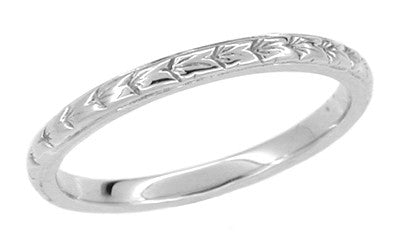 Art Deco Thin Hand Engraved Wheat Wedding Band in White Gold - 2mm
