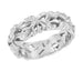 This eye-catching Mid Century Moderne vintage repro pink gold wedding ring measures a substantial 6.6 millimeters wide and is smooth on inside of the band for a comfortable fit.